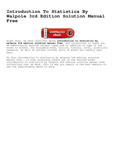 Best introduction to statistics by walpole 3rd edition solution manual pdf Read Online EBook Sites No Sign Up - As we know, Read Online EBook is a great way to spend leisure time. Almost every month, there are new Audio Book being released and there are numerous brand new Audio Book as well.
